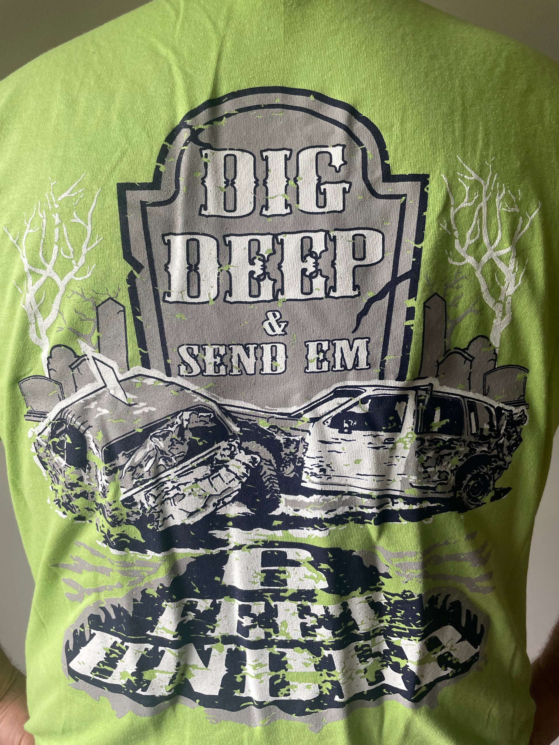 Deadman Derby Logo on Front/ "Dig Deep & Send Em 6 Ft Under” on Back